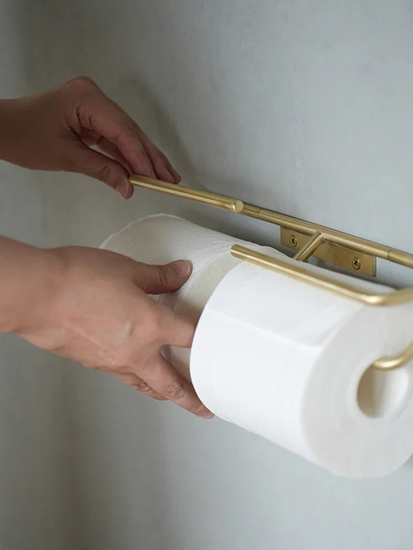 「KT 系列衛生紙架」提供黃銅與不鏽鋼兩種材質選擇,並分為單捲與雙捲款式,滿足不同使用需求。