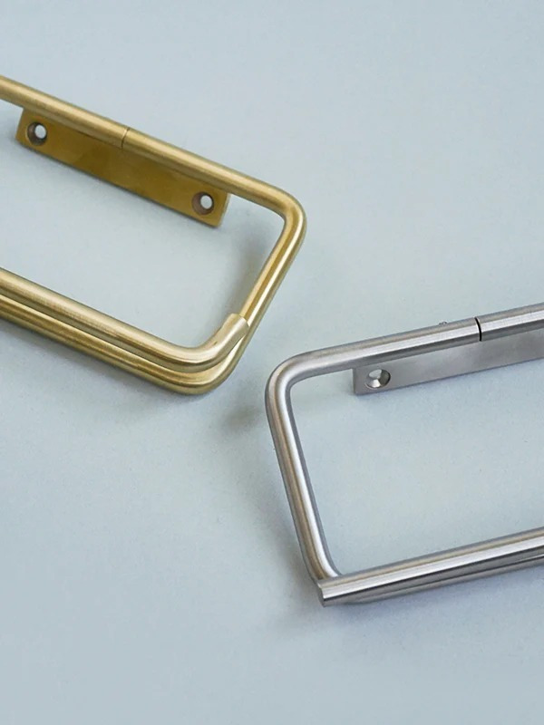材質方面,黃銅款採用霧面處理,初始呈現淡雅的金屬光澤,隨著日常使用與時間推移,會逐漸轉為沉穩內斂的色澤,展現自然的經年變化之美;不鏽鋼款同樣為霧面質感,堅固耐用,且不易產生明顯變化,營造俐落現代的空間氛圍。